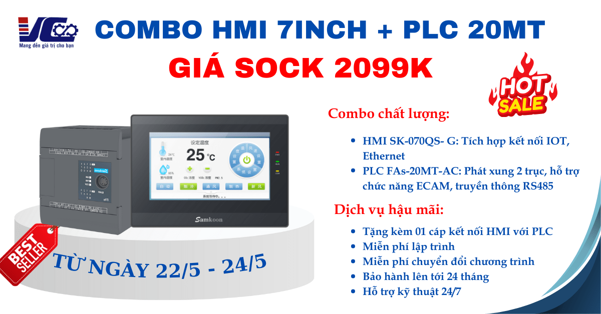 SIÊU SALE CHÀO HÈ: COMBO HMI 7 INCH + PLC FAS20MT-AC CHỈ 2099K